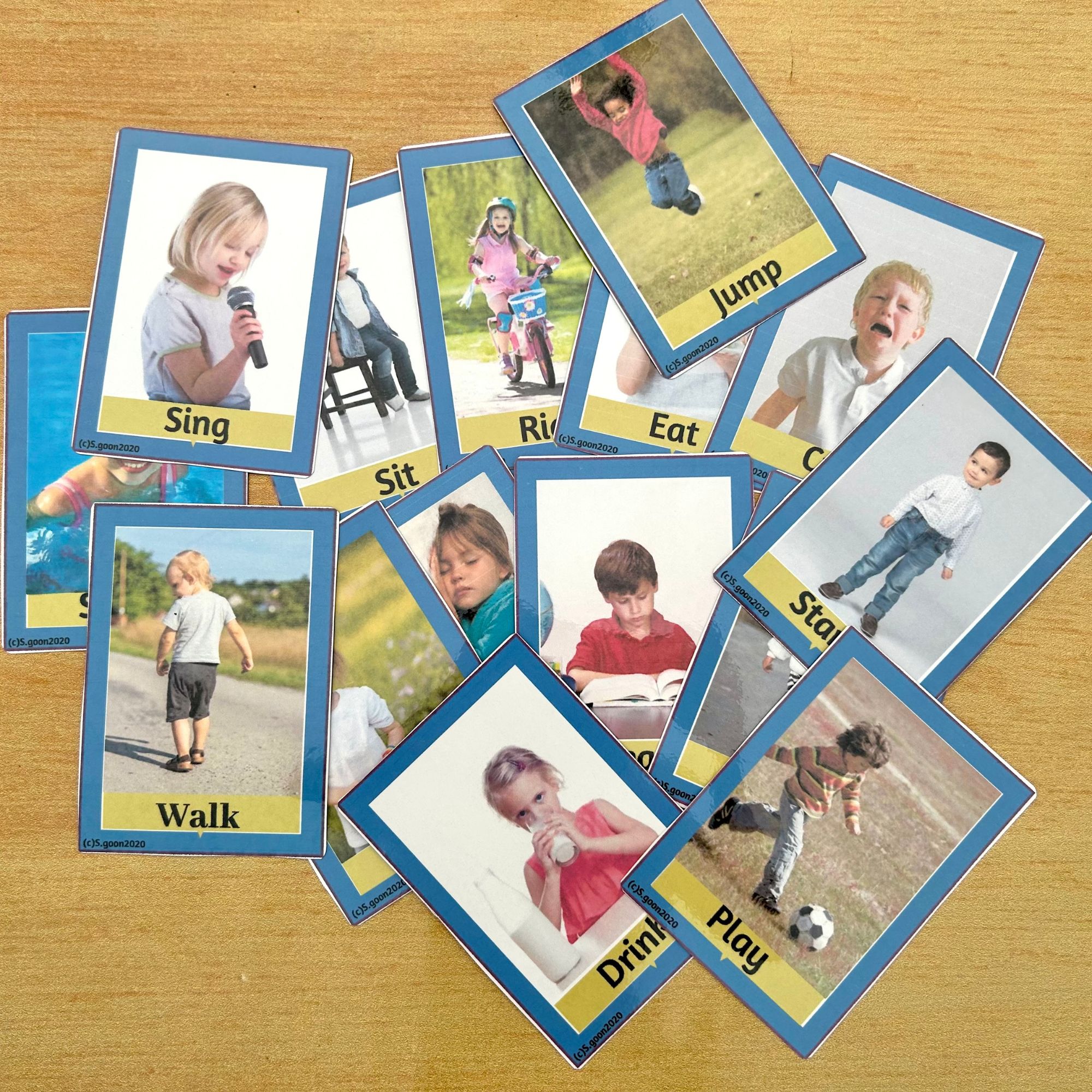 In this pack Include: cry, eat, sit, sleep, play, read, ride, run, drink, laugh, write, sing, stand, swim, walk, jump