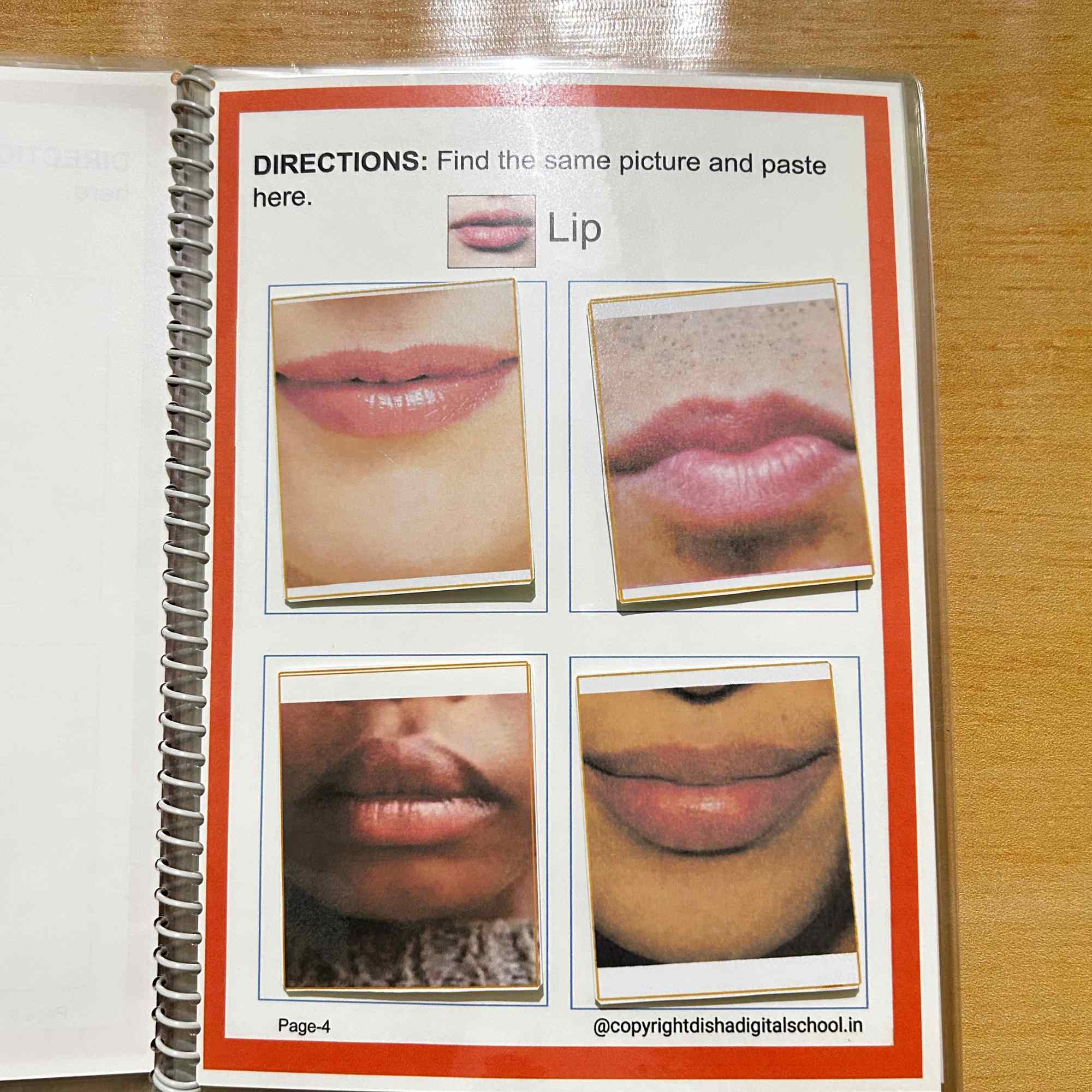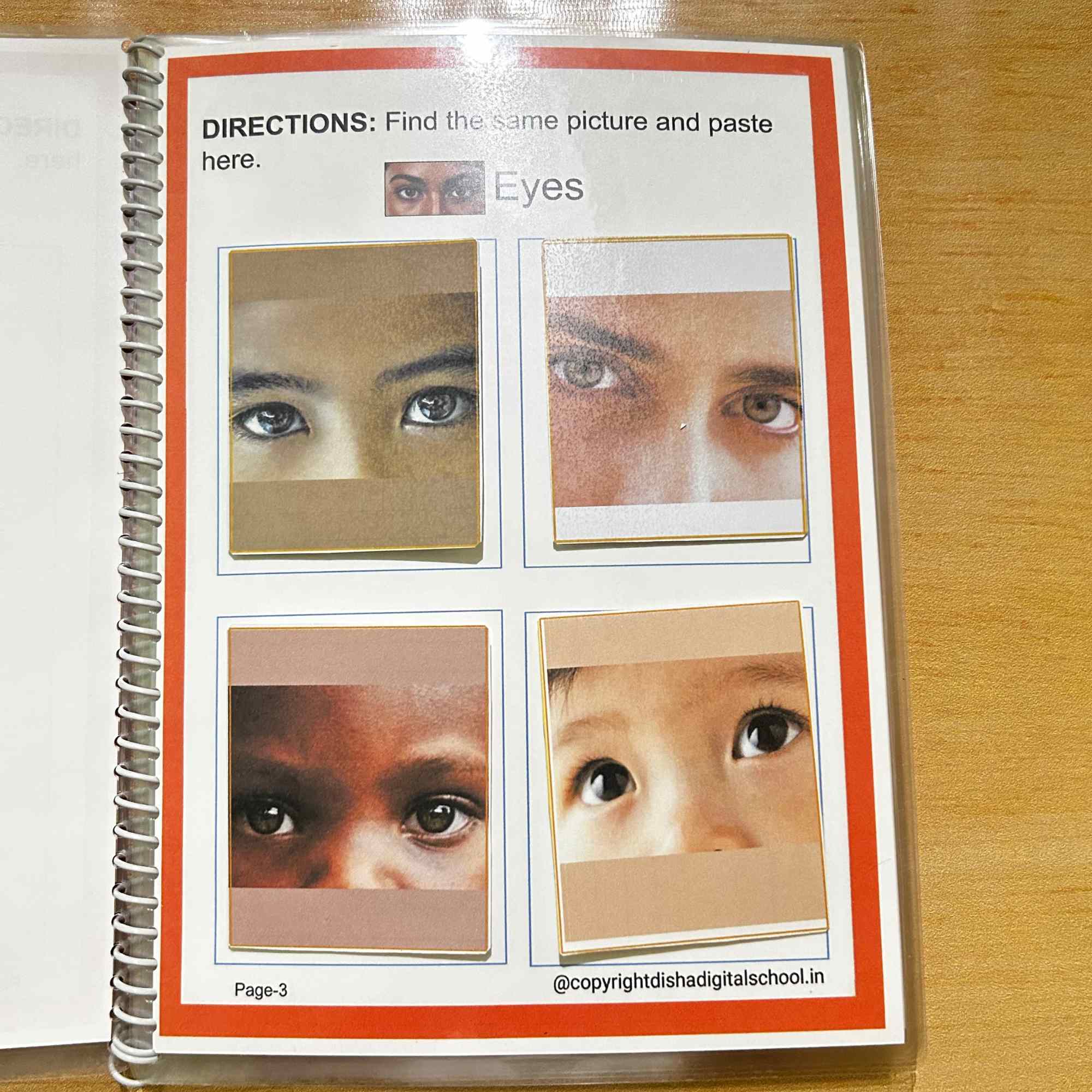 - Nine Body Parts: This activity book covers nine essential body parts, including the hands, legs, eyes, ears, nose, lips, teeth, hair, tongue. Each body part is accompanied by four corresponding cards, providing ample opportunities for sorting and learning.