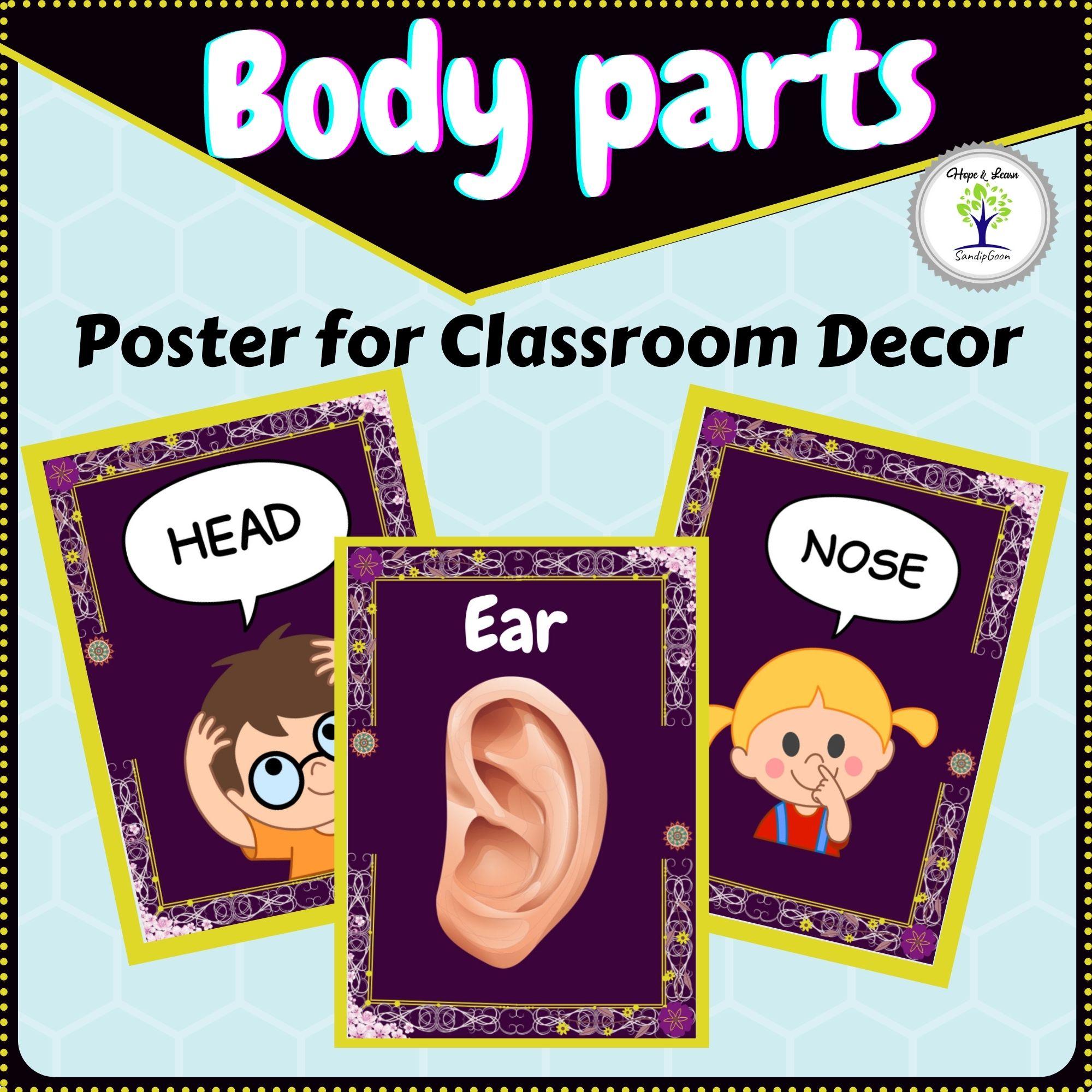 Body parts poster are perfect for classroom decoration. Through these pictures on a4 page, students will be able to identify different parts of their body by looking at the pictures.
