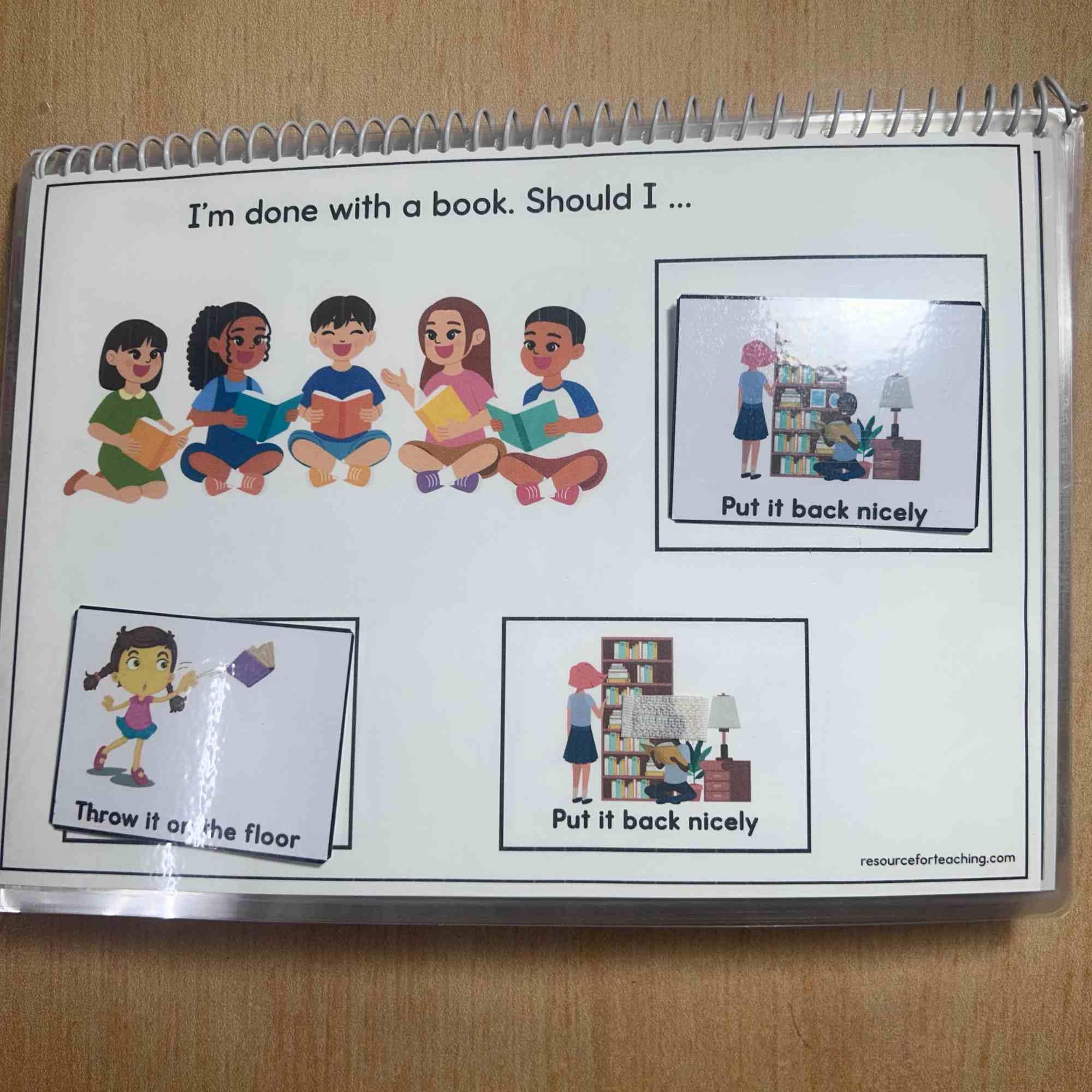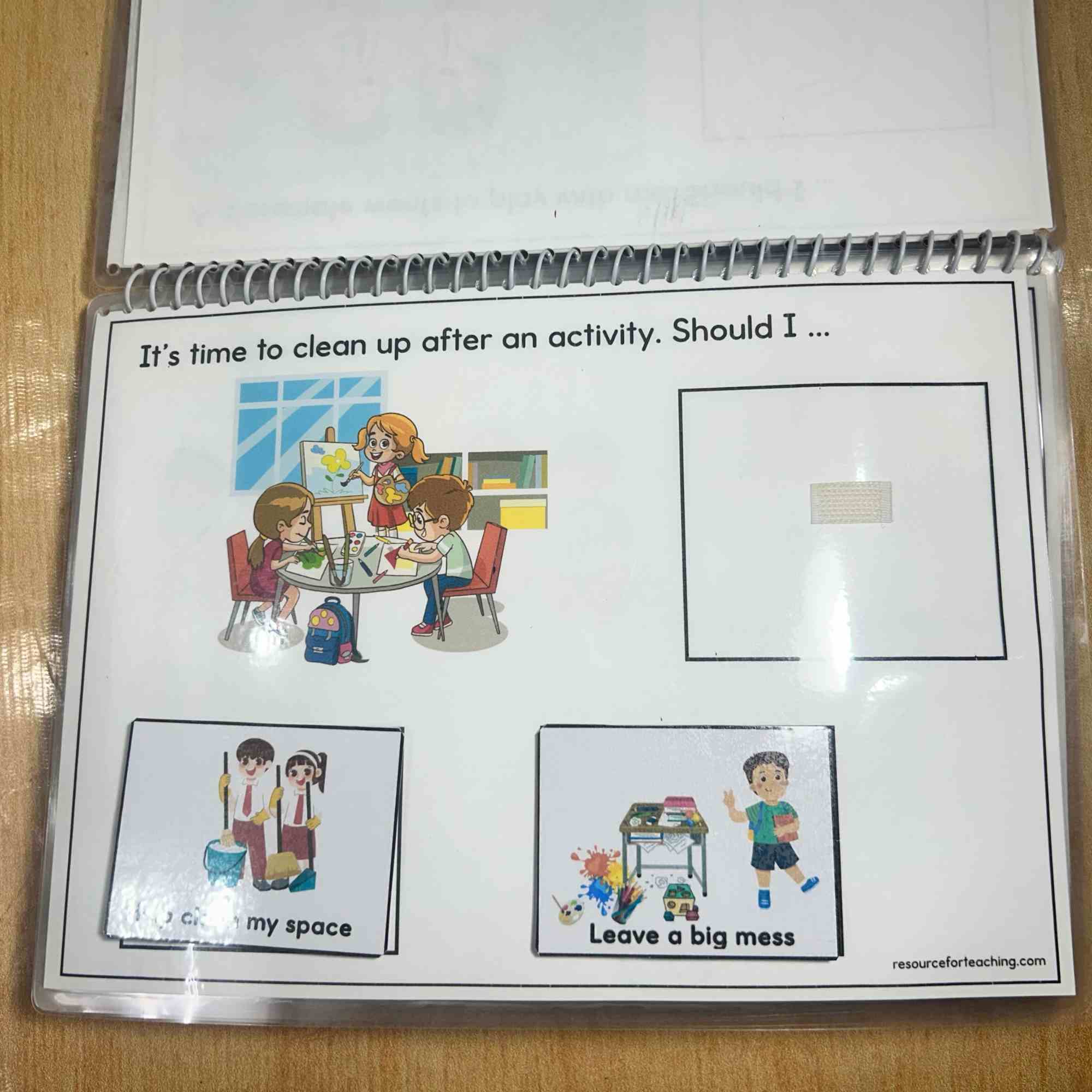 The entire book is laminated for long-term use and includes Velcro attachments for easy interaction, making it perfect for hands-on learning in a classroom or therapy setting. The visual format supports students who benefit from picture-based learning, including those with autism, ADHD, or other developmental needs.