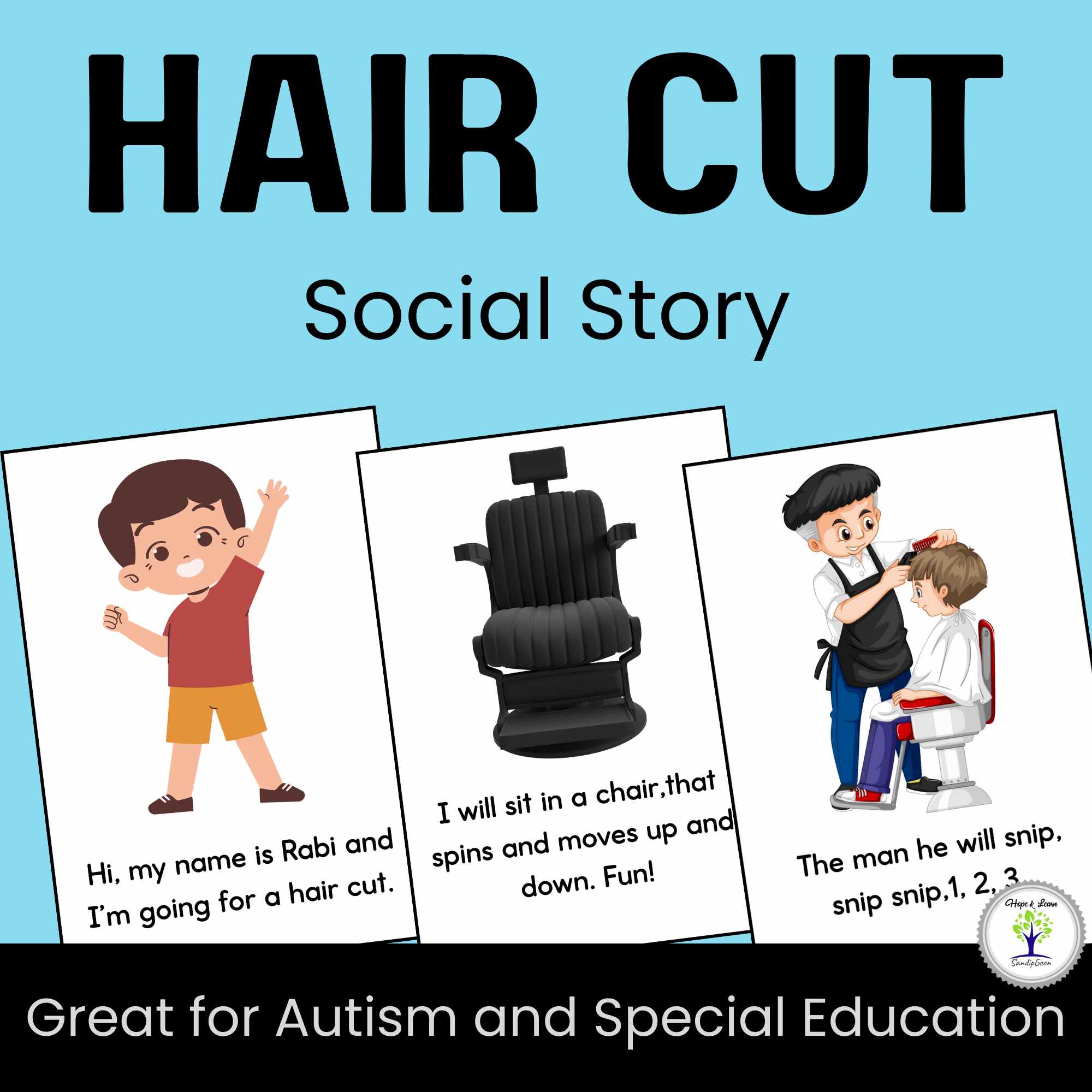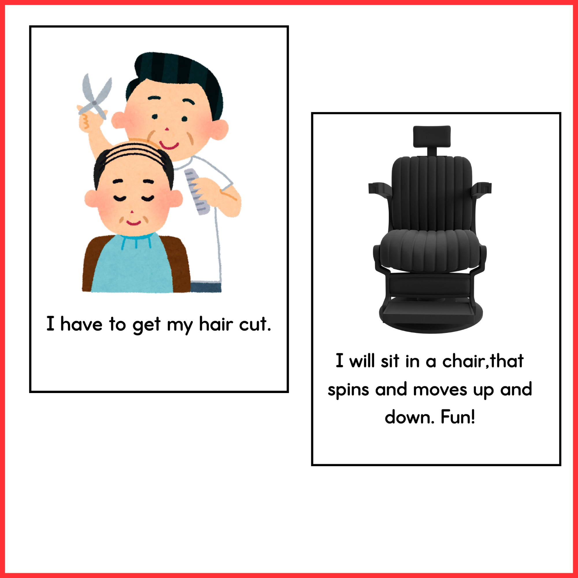 Is haircut day met with tears and tantrums? This Haircut social story for autism can help! With 16 colorful pages, it walks children through the entire haircut experience in a calm and reassuring way.