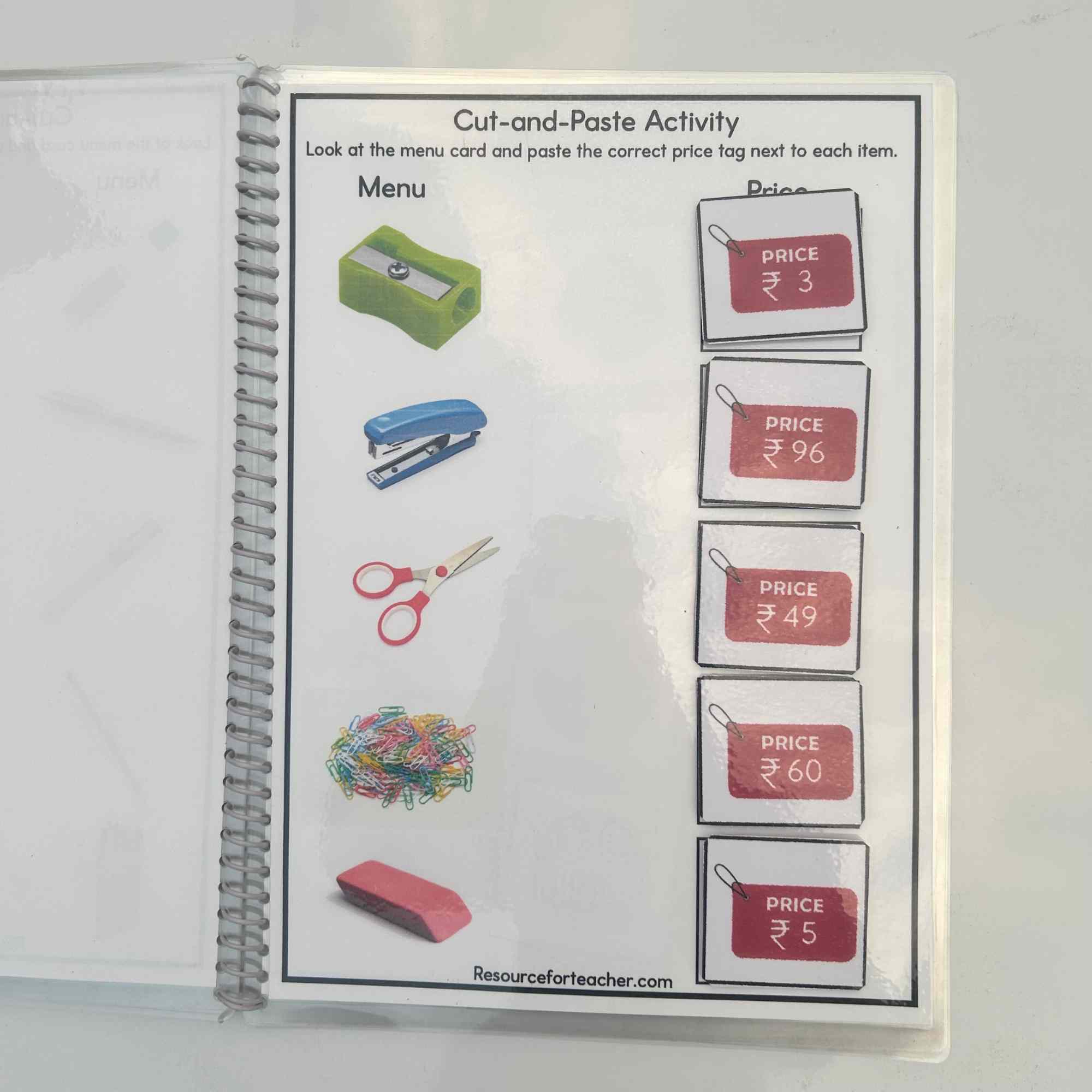 Looking for an engaging way to teach money concepts using Indian currency? Menu Math Worksheet for Special Education is the perfect resource to help students identify prices, count money, and make purchases using rupees! This hands-on, interactive set includes cut-and-paste activities, matching exercises, and real-life shopping scenariostailored for learners who need extra support in understanding money concepts.