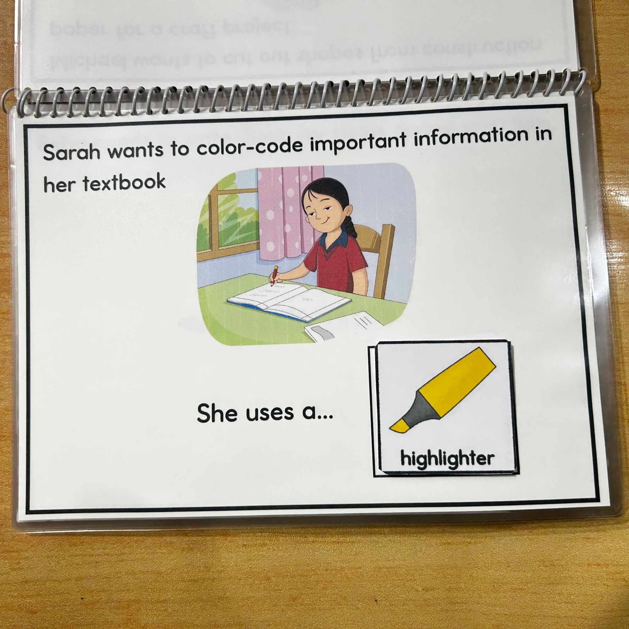 Enhance reading skills and engage students in an interactive learning experience with our “School Supplies Reading Comprehension” book. This specially designed resource is perfect for students in special education programs, providing a unique approach to developing reading comprehension skills.