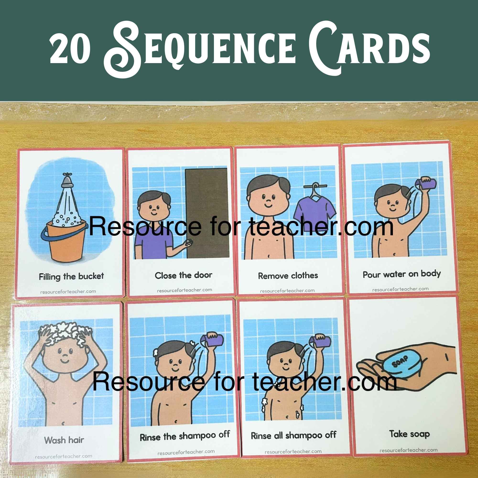 - Visual Learning: Our resource employs a visually intuitive approach to guide boys through the bath time routine. Each step is presented in clear and easy-to-understand illustrations, ensuring that learners can easily follow along.